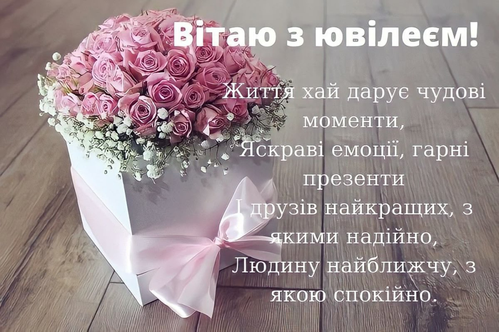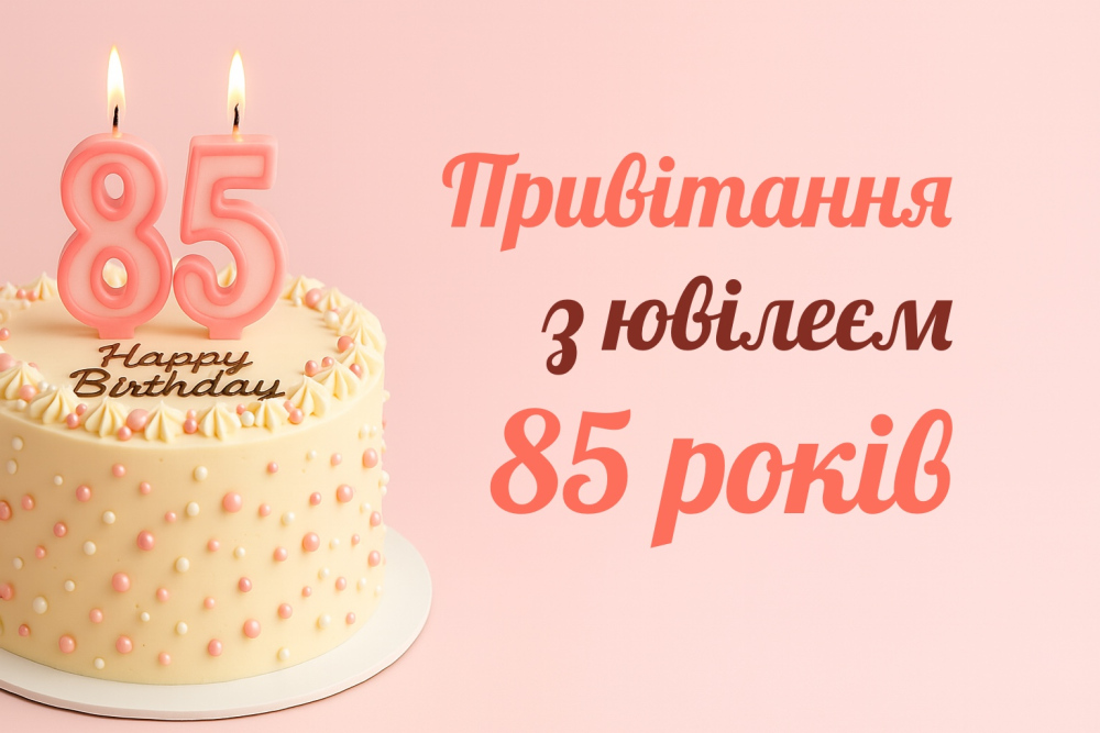 Із 85-річним ювілеєм! Нехай будинок буде сповнений смачних страв та дорогих гостей! Нехай здоров’я буде міцним, тіло – енергійним, а душа – світлою та спокійною! Нехай життя приносить задоволення! Нехай доля дбає про вас і береже від бід!