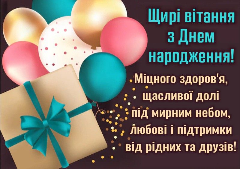 Вітаю з днем народження, хочу побажати впевненості в собі, прибутковою, спокійною і улюбленої роботи, стабільної, міцної, великої і щасливої сім’ї, незабутніх вражень, дорогою машини, заміської дачі, повна хата друзів, впевненості у завтрашньому дні.
