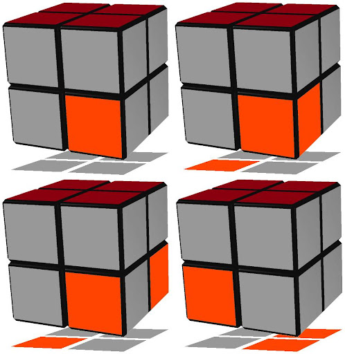 Іноді кут може бути на правильному місці, але повернутий невірно. Для цього тримайте куб так, щоб “неправильний” кут був у правому верхньому передньому положенні. Виконайте формулу R’ D’ R D кілька разів, поки кут не стане правильно. Поверніть верхній шар і повторіть для наступного кута. Зібраний нижній шар при цьому не руйнується.